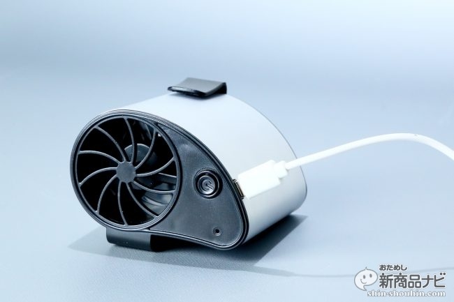 操作はボタン一つで切り替え見た目ほどには重くないが厚みがあるのはやはり風力を生むためにファンのサイズを大きくしたためだろう。充電はMicroUSB経由。フル充電には約4時間かかるが、一度充電してしまうと粘り強く動く。カタログスペックの弱・約4時間 中・約3.5時間 強・約3時間というのは、ほぼ嘘ではなかった。