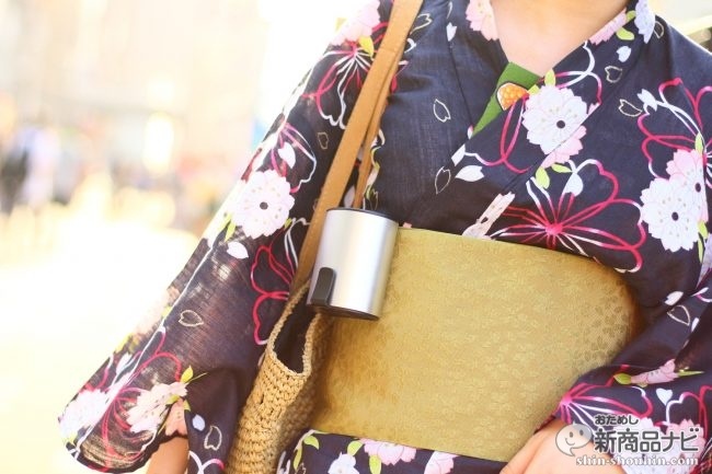 涼しげに見えるけれど当人は結構暑い浴衣の味方にもなる記者はすっかりメタボ気味なので、一番使いでがあったのは、目的地への到着時のクールダウンタイミング。移動中も自分だけ風を浴びているというのはうれしいのだが、それよりも到着時が重要。社内などは最近、エアコン設定温度が高めのところも多いので、到着した際に、それまで動いていたせいで、汗が噴き出すことがある。そんな時に使うと、エアコンが効いている室内なので、ものすごく涼しい風を感じることができる。これはもう一気に汗が引くくらいのインパクト。