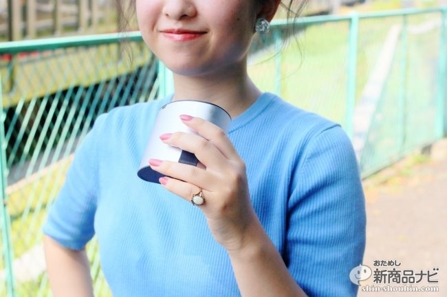 風量は3段階切り替え。炎天下などでは最強にしたいものだが、キーンという駆動音は結構派手。弱にしていればそれほどうるさくないが、強にすると屋外でも結構聞こえるレベルの騒音。電車やバスの中ではかなり目立ってしまうこと確実だ。まあ熱中症寸前なのだとしたら、世間の目など気にしている場合ではないと思うが。
