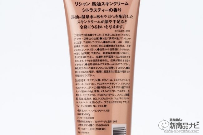 潤い抜群なのにプチプラ!『リシャン馬油スキンクリーム シトラスティーの香り』 (2/3ページ)