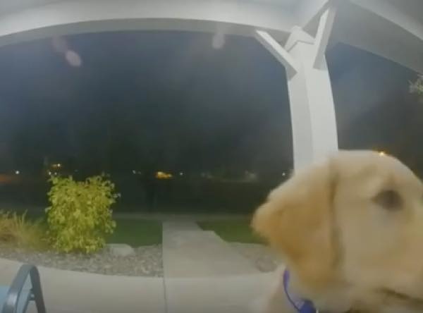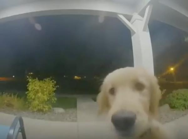 そこでワンちゃんは、玄関にドアベルをごそごそ。経験上ドアをノックするとドアが開くということを知っていたのだ。