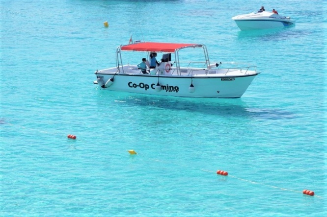船でコミノ島に到着すると、乾燥した荒々しい島とは対照的な、透き通った海の美しさに息を吞むはず。
