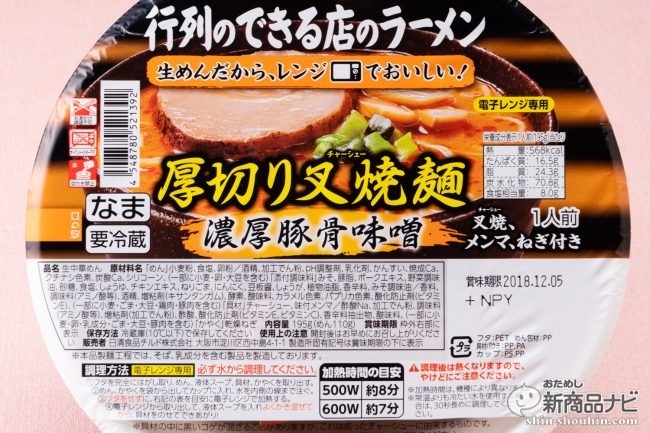 【新発売】レンジでグツグツ、茹でたてツルツル生麺! 『レンジカップ 行列のできる店のラーメン 厚切り叉焼麺 背脂豚骨醤油 / 濃厚豚骨味噌』がすごい (1/4ページ)