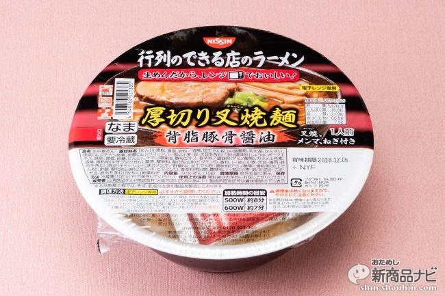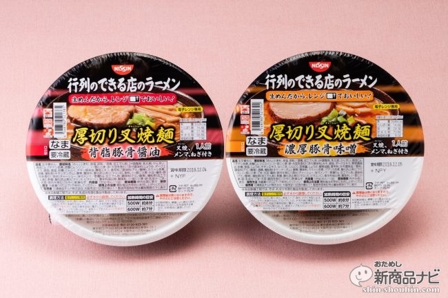 【新発売】レンジでグツグツ、茹でたてツルツル生麺! 『レンジカップ 行列のできる店のラーメン 厚切り叉焼麺 背脂豚骨醤油 / 濃厚豚骨味噌』がすごい