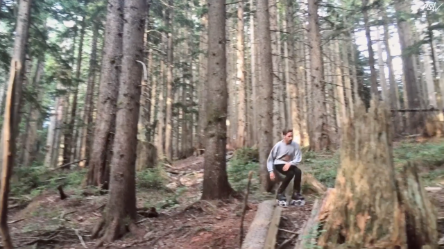 運動神経抜群!マウンテンバイク用のコースをインラインスケートで走行。