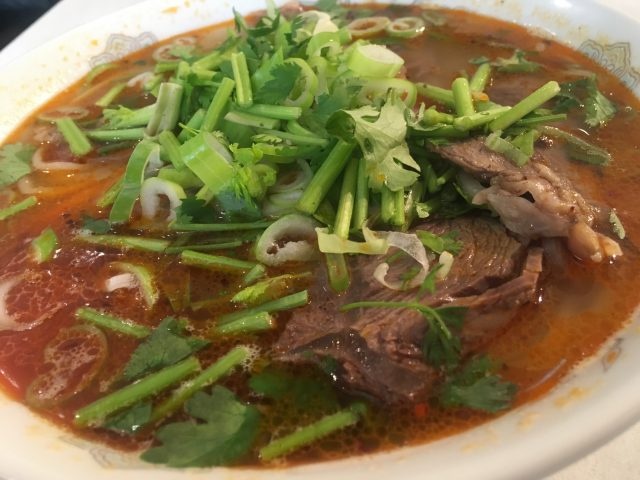 蘭州ラーメン(蘭州牛肉麺)とは、中国西北部発祥の麺料理で、多様なスパイスと牛骨から採ったスープに手延べした手打ち麺を合わせるのが特徴。今では中国全土に広がり、国民食となっているそうです。