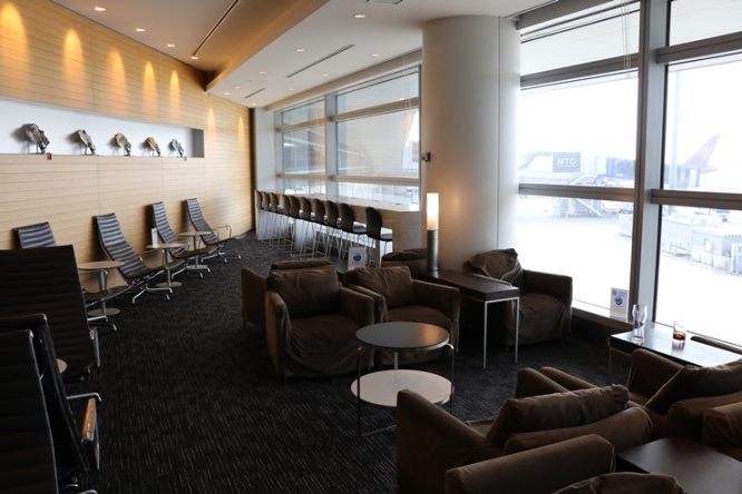 スターアライアンスラウンジは細長いつくりになっており、仕切られた喫煙室をのぞいて、大部分の席が窓に面しています。