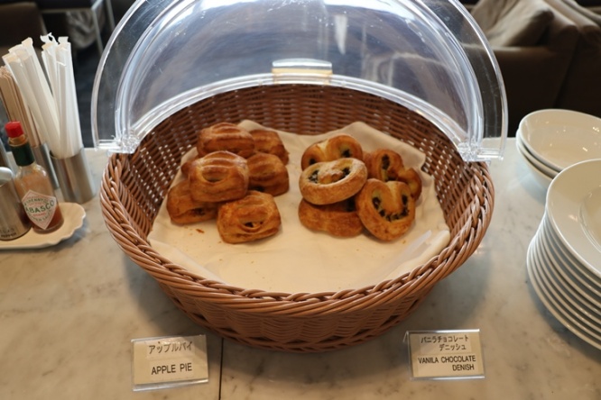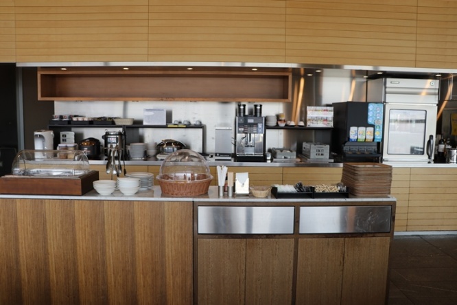 ラウンジの中央あたりには食べ物や飲み物が用意されたカウンターがあります。