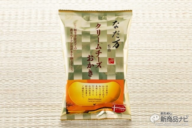 ファミリーマートで見つけたリッチな見た目のお菓子『なだ万監修 クリームチーズおかき』。創作米菓をコンセプトに様々な商品を展開する三真が日本料理・懐石料理として知られる老舗なだ万の監修のもと開発したおかきらしい。パッケージ裏の説明によると、クリームチーズと香りベーコンの2種類のおかきをミックスした商品らしいが果たしてその味は?