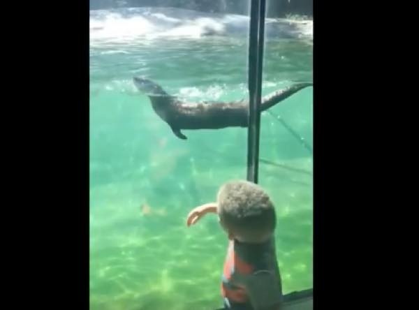 こちらの動画では、とある男の子がカワウソの水槽を前に大興奮し・・・