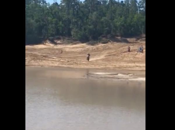 しかしこちらの動画では、陸用の普通のバイクが助走をつけていき・・・