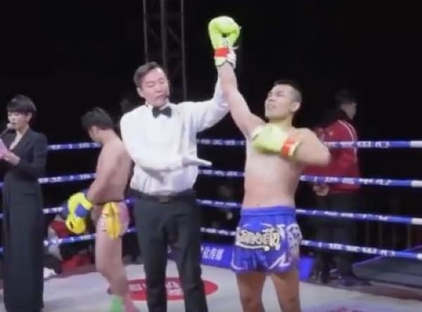 こちらの動画は、中国にて行われたキックボクシングの試合なのだが・・・