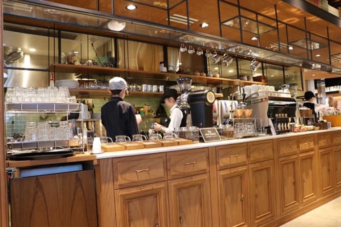 ショップカウンターの中にはきびきびと働くスタッフさんたちの姿が。