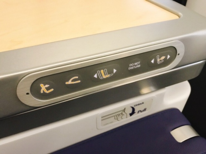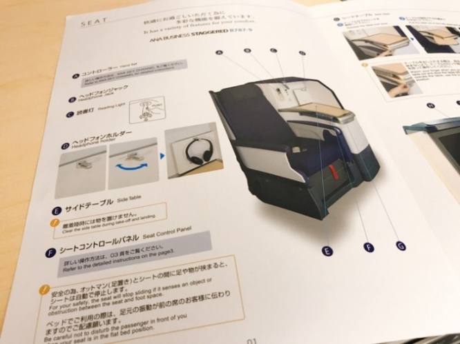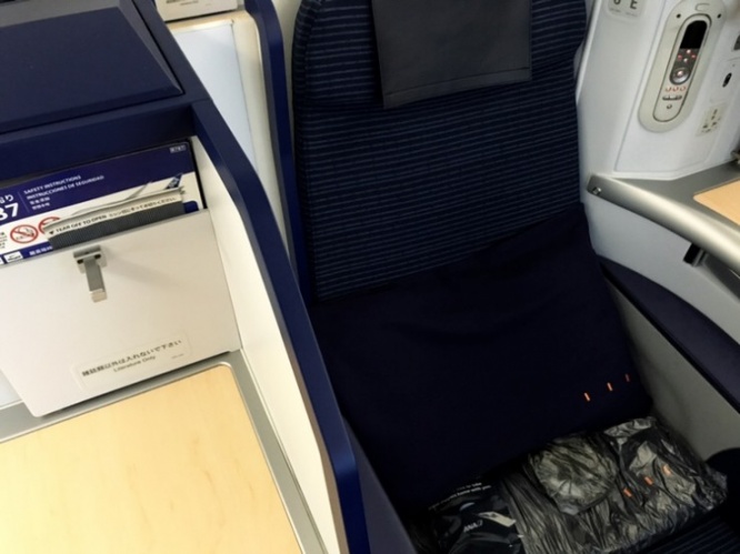 全日空(ANA)のビジネスクラスはシンプルながらも使い勝手の良いシートとなっています。