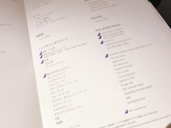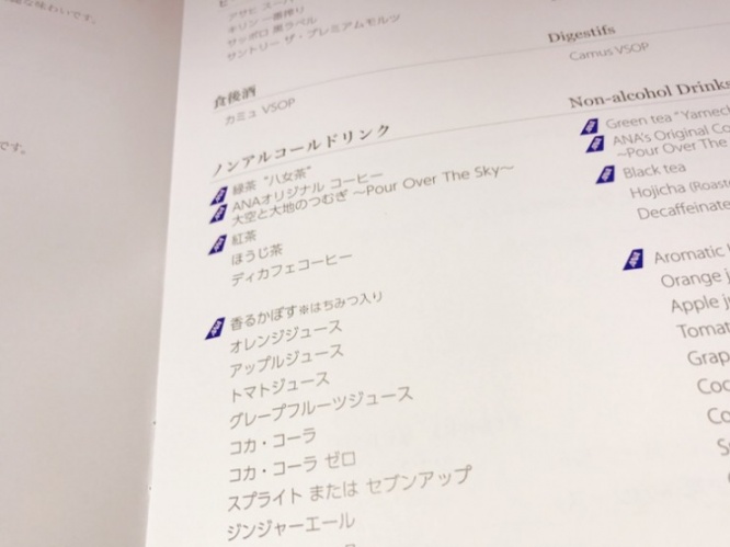 ・全日空(ANA)のビジネスクラスのドリンク