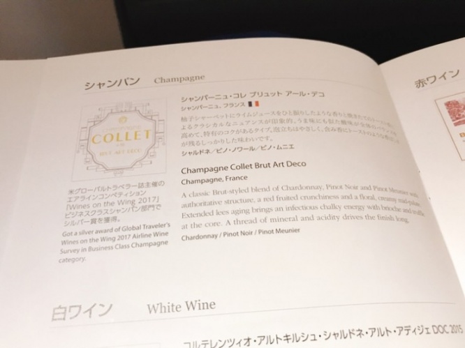 全日空(ANA)のビジネスクラスのウェルカムドリンクはもちろんシャンパンです。