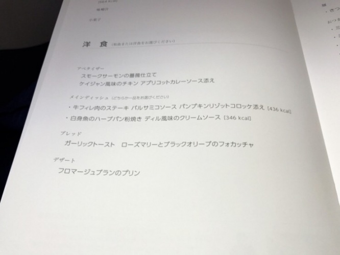 メインの食事のメニューは和食と洋食の2つから選択可能です。