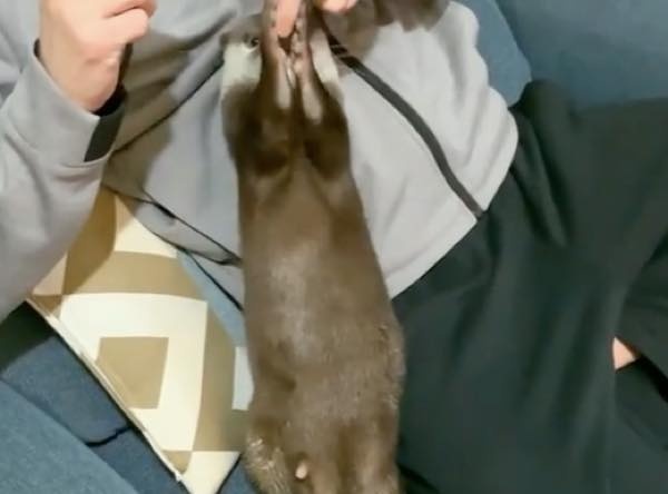 かわいすぎかよ…! カワウソの『ゴロン』と『ハイタッチ』の合わせ技。