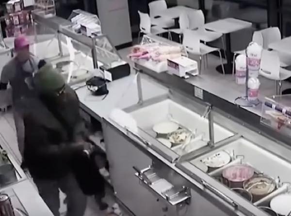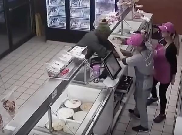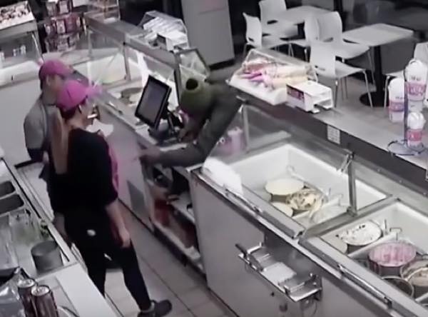 こちらの動画には、サーティワンアイスクリーム(海外ではバスキンロビンス)の店内に強盗が侵入した様子が収められているのだが・・・