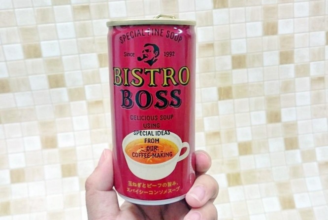 見た目は缶コーヒー、中身は...話題の商品は、サントリー「ビストロボス 玉ねぎとビーフの旨み、スパイシーコンソメスープ」です。18年9月の発売以降、サントリーの自動販売機で売っています。コーンスープなどはよく見かけますが、コンソメスープが自動販売機にあるのは珍しいかもしれませんね。ツイッターでは、「BOSS」のロゴを見て「コーヒーだと思って買った」という人も見かけました。