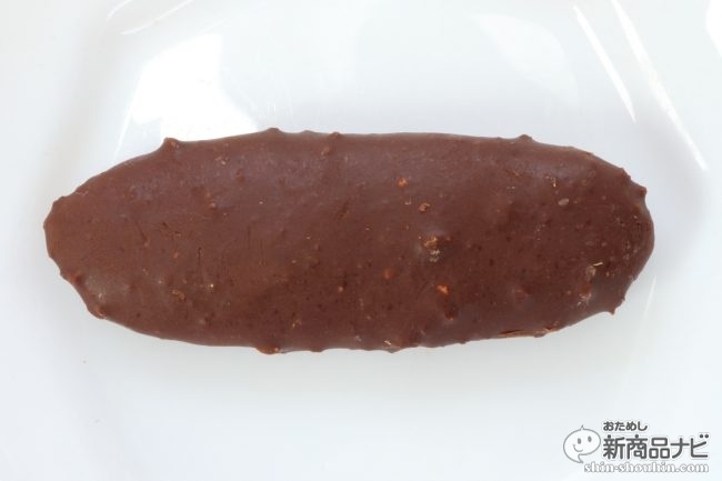 チョコレートを味わっていると、ちょっとつぶつぶした物体を感じるがこれはせんべいの表面にほどこされたアーモンドクッキー。歯ざわりがよく、味のアクセントになっている。コーヒーなんかと合わせて楽しみたい味わいだ。