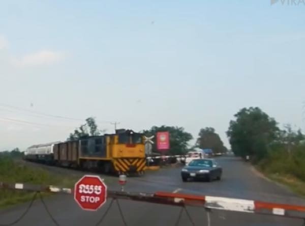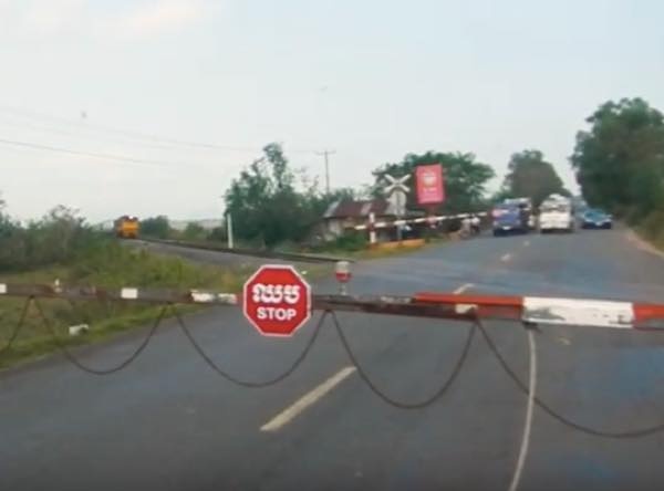しかし後ろから一台の乗用車が、踏切を待ちきれなくなったのかトラックなどを抜かして前にやってくる。