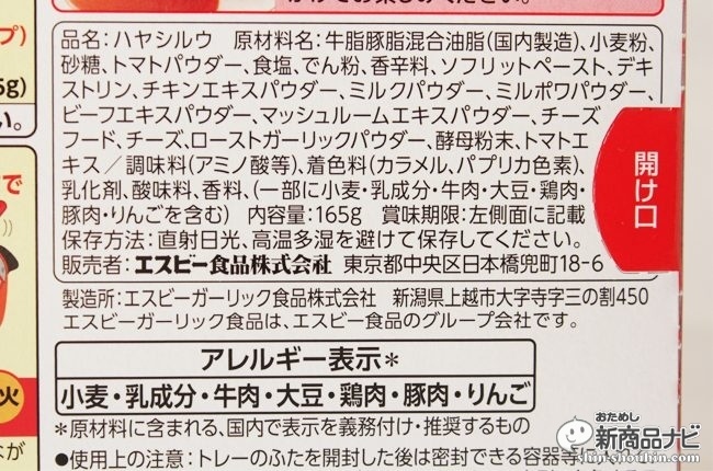 『チーズ好きの濃厚トマトハヤシ』(税別259円・165g・4皿分×2)は、「24ヶ月熟成パルミジャーノ・レッジャーノ」を加えて、味わいの一体感とコク、香りを引き立たせた新しいハヤシライスソース。甘味と酸味が特徴の「スペイン産完熟トマト」と旨みが強い「イタリア産完熟トマト」の2種類のトマトの美味しさをバランスよく閉じ込めたトマトソースが美味しい。