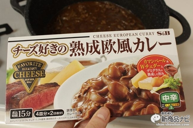 『チーズ好きの熟成欧風カレー中辛』(税別259円・165g・4皿分×2)は、カマンベール、Wチェダー(ホワイトチェダー、スモークチェダー)を使用。素材そのものの旨みや香りを引き出す為に、極力熱をかけずに別窯でソース状にするというこだわりぶり。