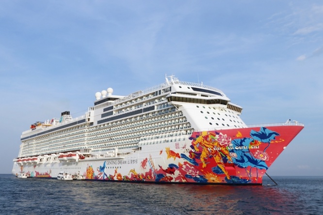 「ゲンティン ドリーム」とは、アジア初のプレミアム客船として2016年秋に登場したクルーズライン「ドリームクルーズ」の第一船となる客船です。総重量15万トン、全長335メートル、19階建て、乗客定員3,300名超を誇る大型客船です。