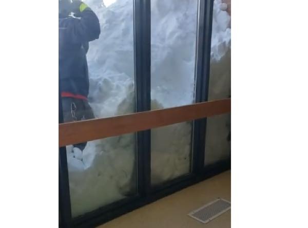 ちょうどガラスで見える位置に埋まってしまっているのに職員が気づき、すぐに雪を掻き出し救出にあたる。