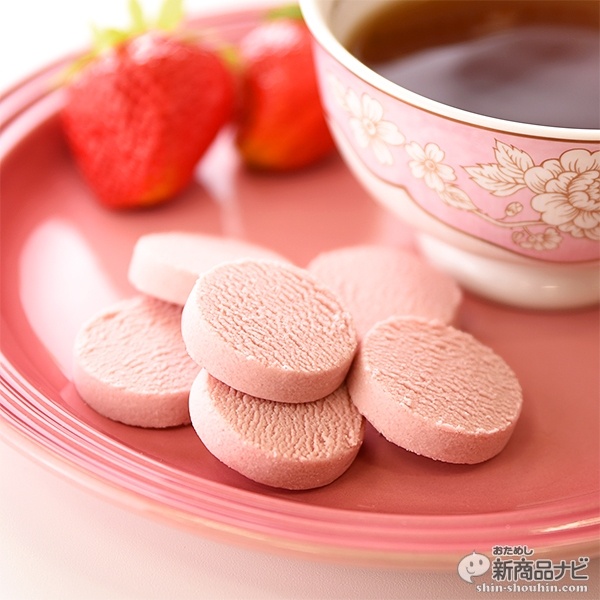 ストロベリーソースのまろやかないちご味となめらかな口どけ食感が特徴で、食べやすい一口サイズのチョコクッキー。