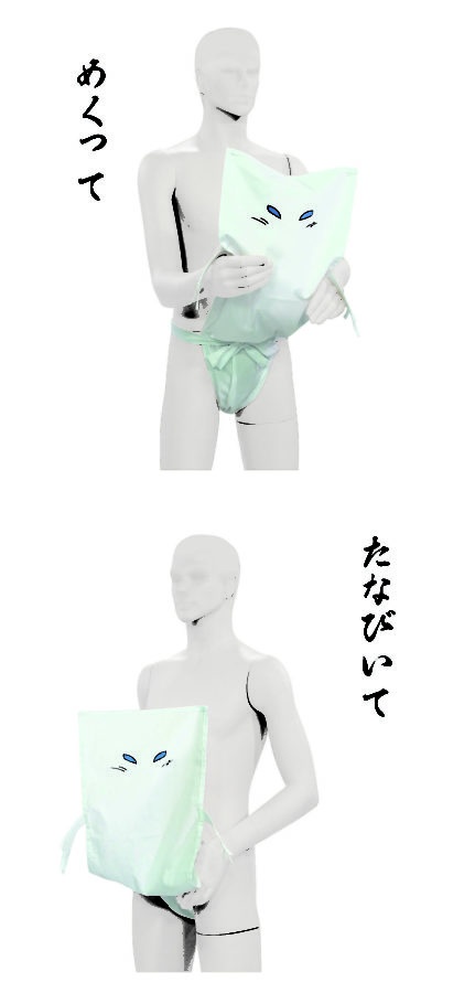 そして、股下から風を送り込みふんどしを目繰り上げることで、まるで一反もめんに乗っているかのような光景に!
