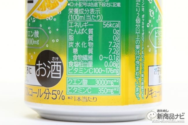 クエン酸3000mg! 疲れも吹っ飛びそうな予感生のレモンを齧ったようだが、強い酸味で5%のアルコールの味はあまり感じない。キレートレモンを飲んでいるとほろ酔いになる、そんな印象だ。