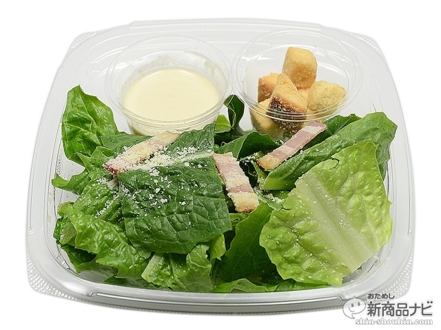 ロメインレタスを使ったシーザーサラダ。濃厚なチーズのうま味に、アンチョビやにんにくを利かせた深みのあるシーザーサラダドレッシングをかけてどうぞ。