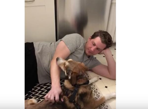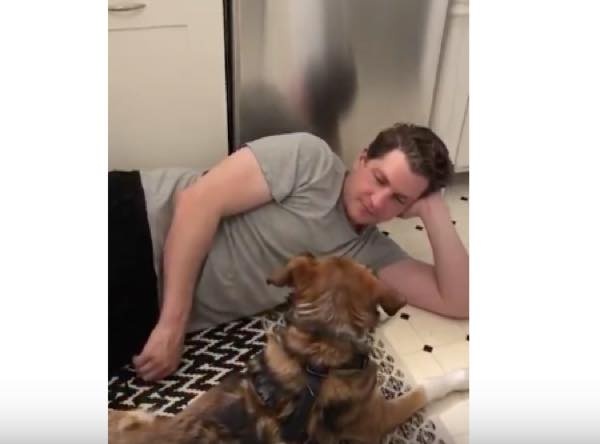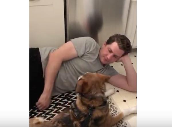 こちらの動画では、とあるワンちゃんがご主人に背中を撫でてもらっていたのだが・・・