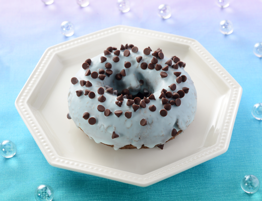 たまごをたっぷり使用し、口どけよく仕上げたココア風味のドーナツ生地にミント風味のチョコをかけ、チョコチップをトッピングしたドーナツ。ドット柄の見た目と爽やかな味が楽しいメニュー。