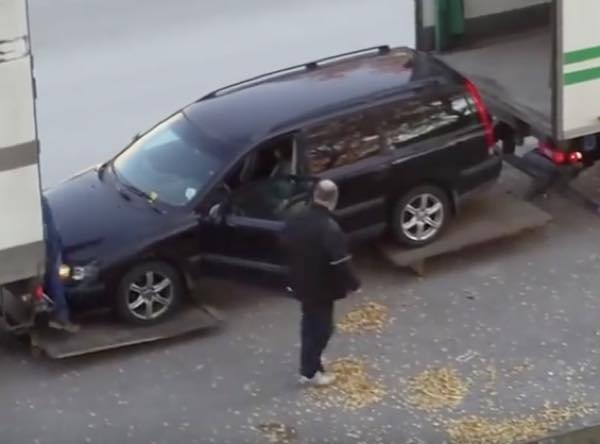 こちらの動画では、とある車をトラックの中に積み込むべく停車している。
