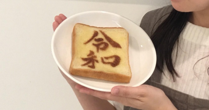 完成したテンプレートを食パンに乗せてココアパウダーやシナモンシュガーなどをふりかければ、令和の文字がくっきりと描かれます。一度テンプレートを作ってしまえば簡単に描けるので朝食にいかがでしょうか?