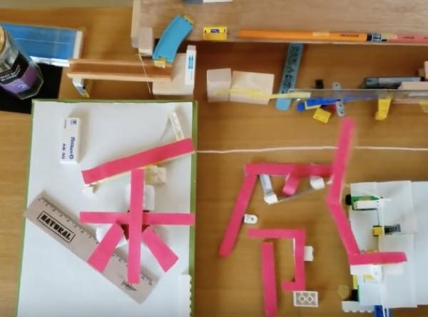 鉄球がスタートした直後に別のビー玉も動き出し『成』の文字を変えていくため、2〜3回見ないと全容を把握できないほどに迅速な文字チェンジ。