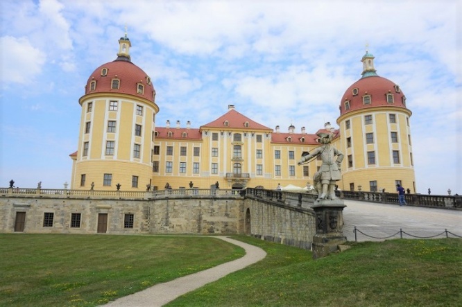 もともと、ザクセン公モーリッツの狩猟の館として建造されたモーリッツブルク城。当初はルネッサンス様式でしたが、1723年から1733年にかけて、アウグスト強王の手でバロック様式の狩猟館兼離宮に改築され、現在の姿となりました。