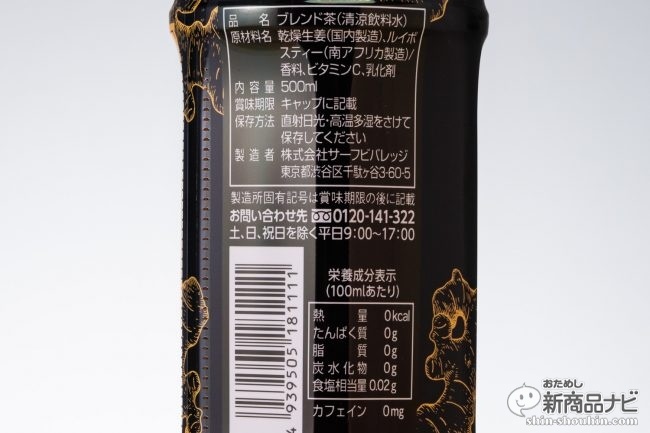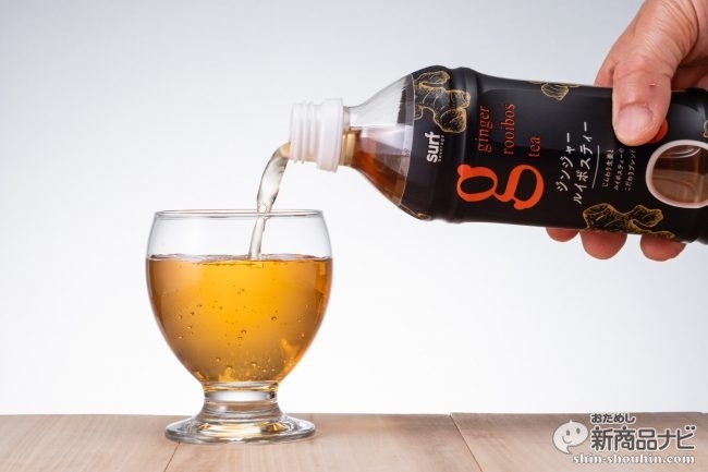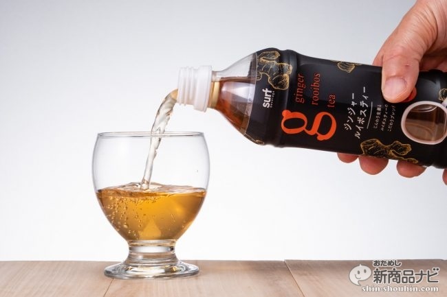 ちょっとエスニック風な黒とオレンジのパッケージには「常温でもおいしく飲める」の文字が。ジンジャーの香りがかなり強めだが、色は一般的なルイボスティーよいもやや薄め。