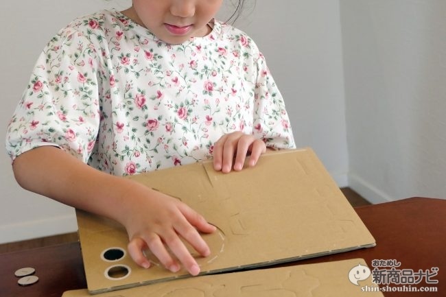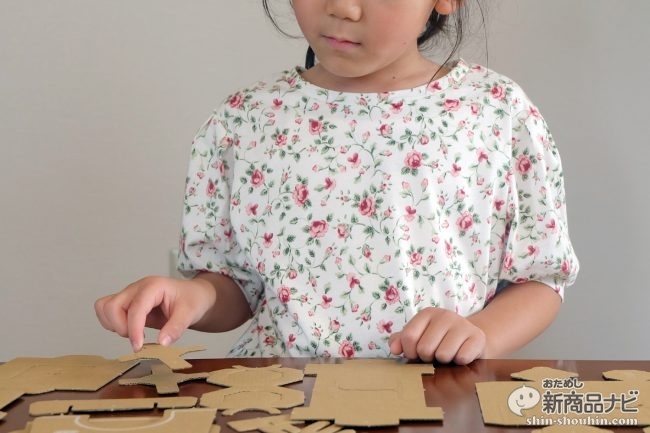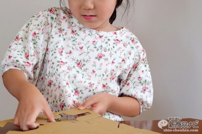 開けた瞬間、ダンボールから型を抜くのが難しいかなと思っていた記者(母)だったが、くりぬきやすい形状になっていて、娘が全て自分でやると主張。破かないか心配しつつ見守ってみる。
