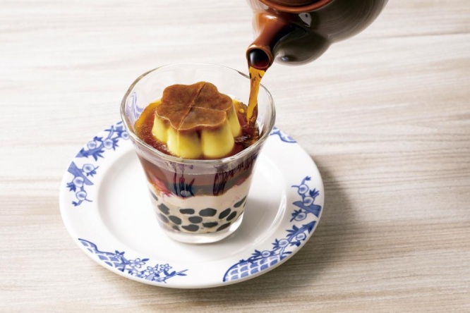 タピオカや熱々のコーヒーとのハーモニーが絶妙な、プッチンプリンの新境地を体験してみて。