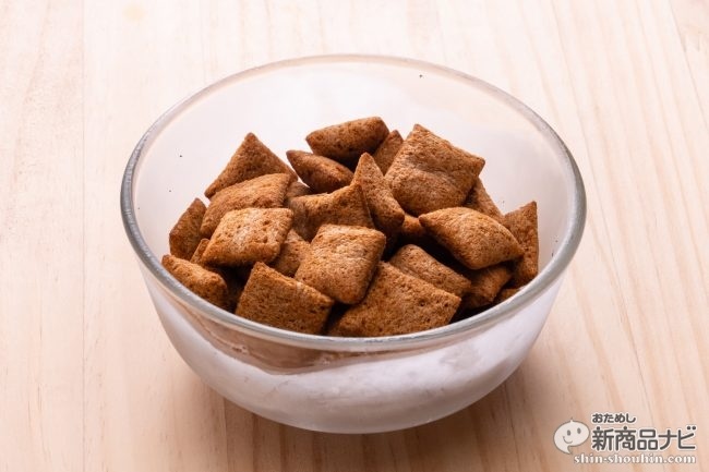 まずは、「ケロッグ ハーシー チョコビッツ ミルキークリーム」から。常温のものから食べてみると、サクサク触感のココアクランチの中からなめらかなミルククリーム。後からくるちょっぴりの塩味がアクセントになった、まさに新感覚のシリアルである。