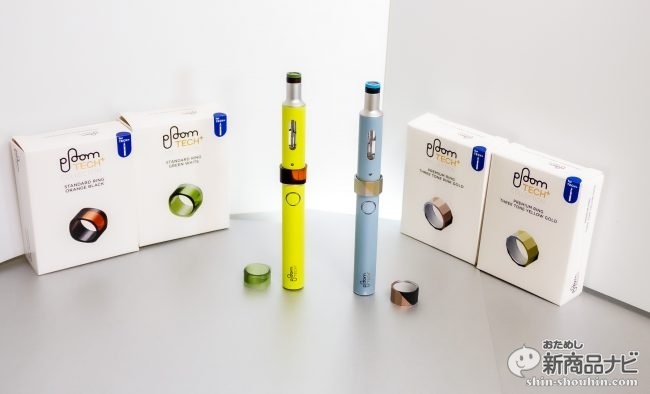 『プルーム・テック・プラス・プレミアムリング スリートーンイエローゴールド/スリートーンピンクゴールド』/『プルーム・テック・プラス・スタンダードリング オレンジブラック/グリーンホワイト』