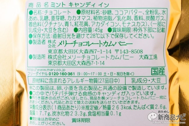 コンビニのお菓子コーナーなどでも、未だかなりのスペースを獲得しているチョコミント。そんなチョコミント人気の中、メリーチョコレートからも、毎年大好評の夏限定商品『ミント キャンディ イン』が今年も夏季限定で登場! 爽やかなミントチョコレートにパチパチ弾けるキャンディが練りこまれている、新感覚チョコレートだ。夏の贈り物としても人気のお菓子はどのような美味しさなのか? 実際に食べてみよう。