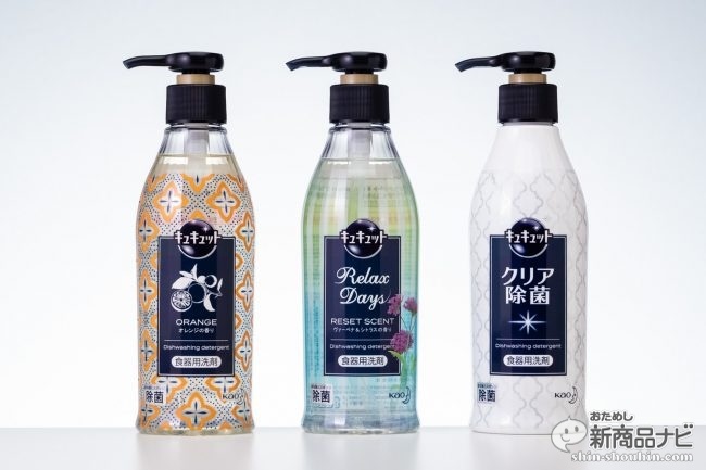 すすいだときに汚れの落ちたお皿がキュッキュッと音がするところが爽快な、人気洗い物快適系洗剤「キュキュット」がラインナップ刷新。新顔の『キュキュット ポンプ[デザインポンプ]オレンジの香り/同クリア除菌/同Relax Daysヴァーベナ&シトラスの香り』と『キュキュット Relax Days(リラックスデイズ)ヴァーベナ&シトラスの香り/ミックスベリー&ピオニーの香り』を紹介する。