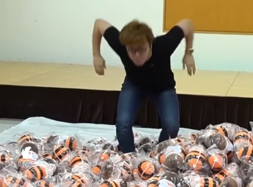 ぬいぐるみの山に飛び込みます。