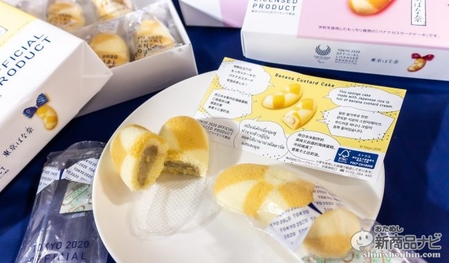 中には7言語のメッセージも改めて食べると、ふわふわの生地の中心にしっかり甘いバナナ風味のカスタードクリーム。何個でもいける軽い食べ心地がいい。