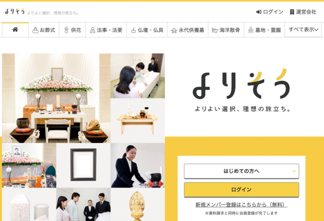 加えて同社は、2018年3月に、終活、葬儀、相続などのサービスをワンストップで提供するブランド「よりそう」を発表。2019年8月現在、加入することで葬儀・供養の特典が受けられる「よりそうメンバー制度」の会員は数万人規模に成長しているとのこと。将来的には、介護など老後に関わるそのほかの領域への事業拡大を目指す。